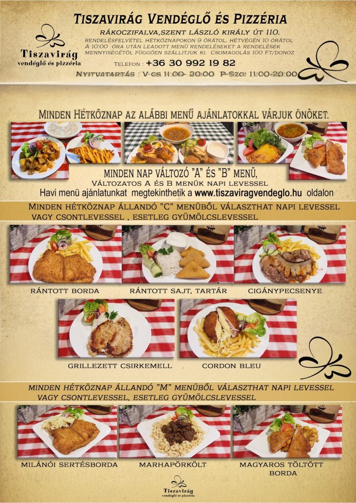 Üdvözöljük a Tiszavirág Vendéglő és Pizzéria oldalán!
