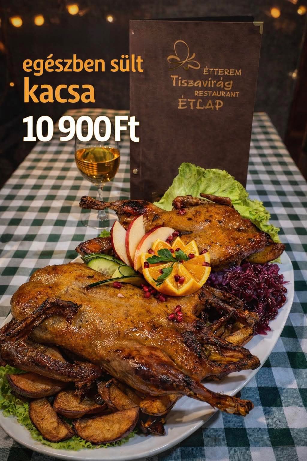 Kizárólag előrendelésre tudjuk elkészíteni az egészben sült kacsát.